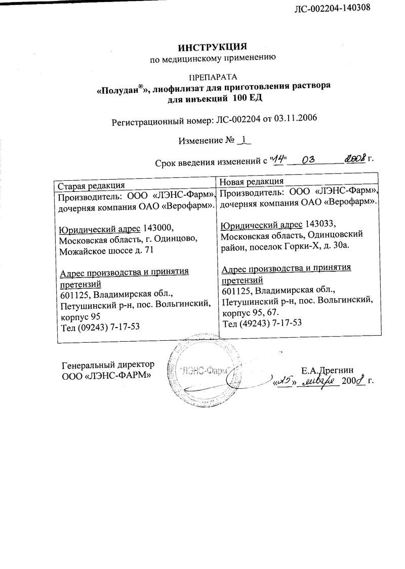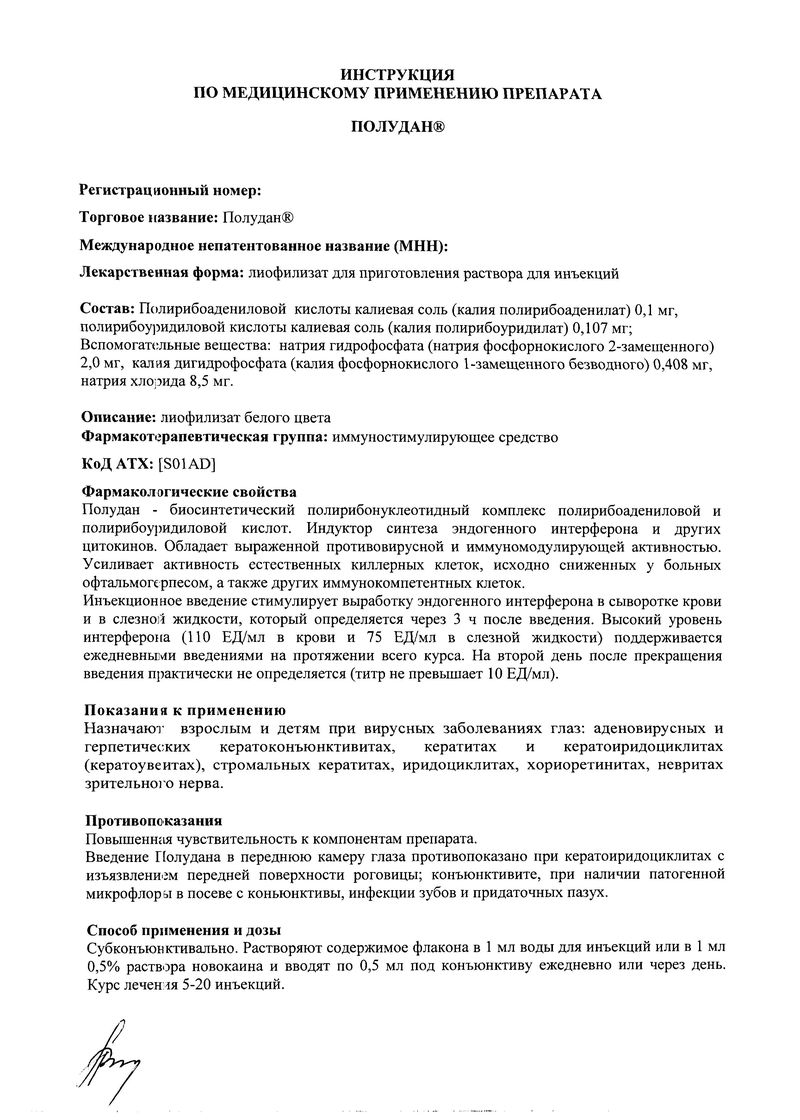 Описание лекарственного средства Полудан® не предназначено для назначения лечения без участия врача.