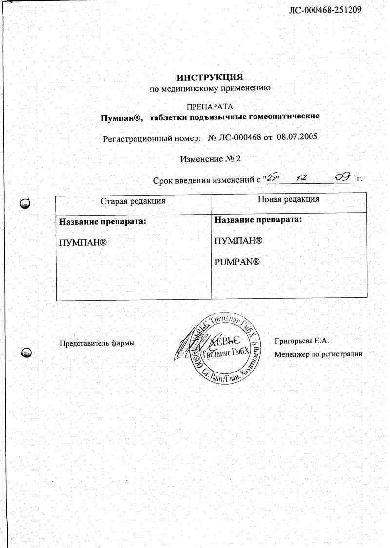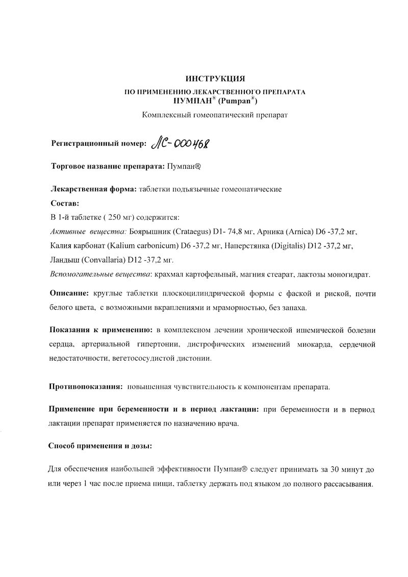 Описание лекарственного средства Пумпан® не предназначено для назначения лечения без участия врача.