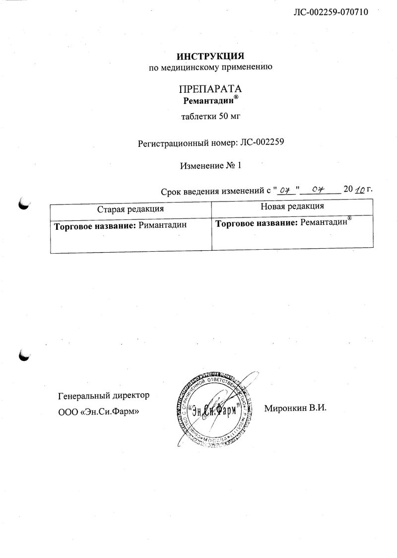 Описание лекарственного средства Ремантадин® не предназначено для назначения лечения без участия врача.