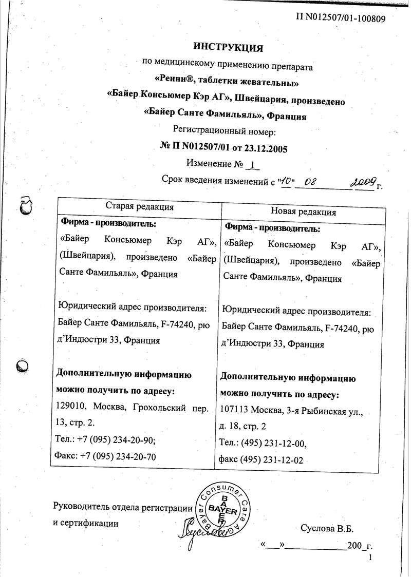 Описание лекарственного средства Ренни® не предназначено для назначения лечения без участия врача.