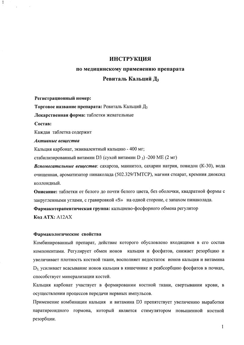 На этой странице Вы можете получить максимум информации о таком лекарственном средстве как Ревиталь Кальций Д3.