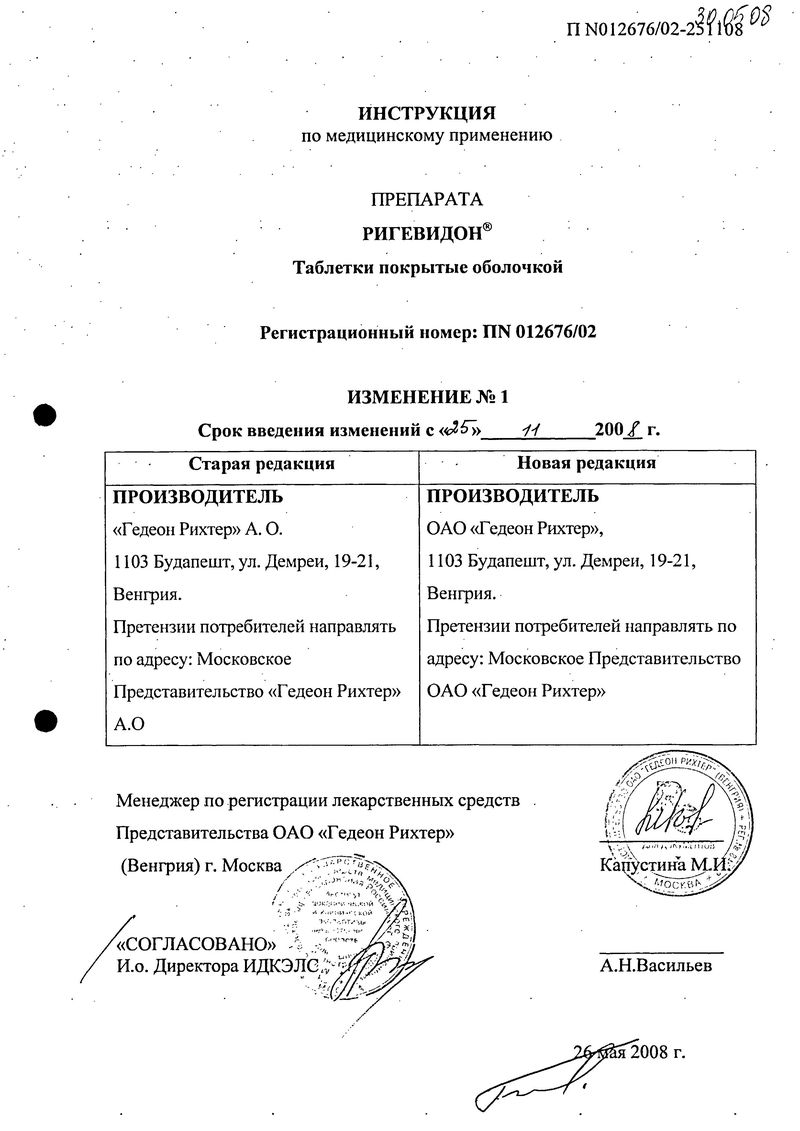 Описание лекарственного средства Ригевидон® не предназначено для назначения лечения без участия врача.