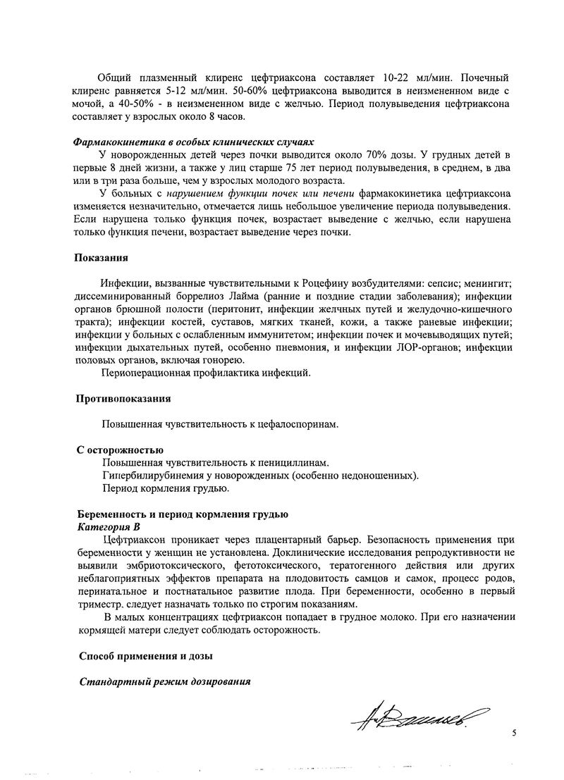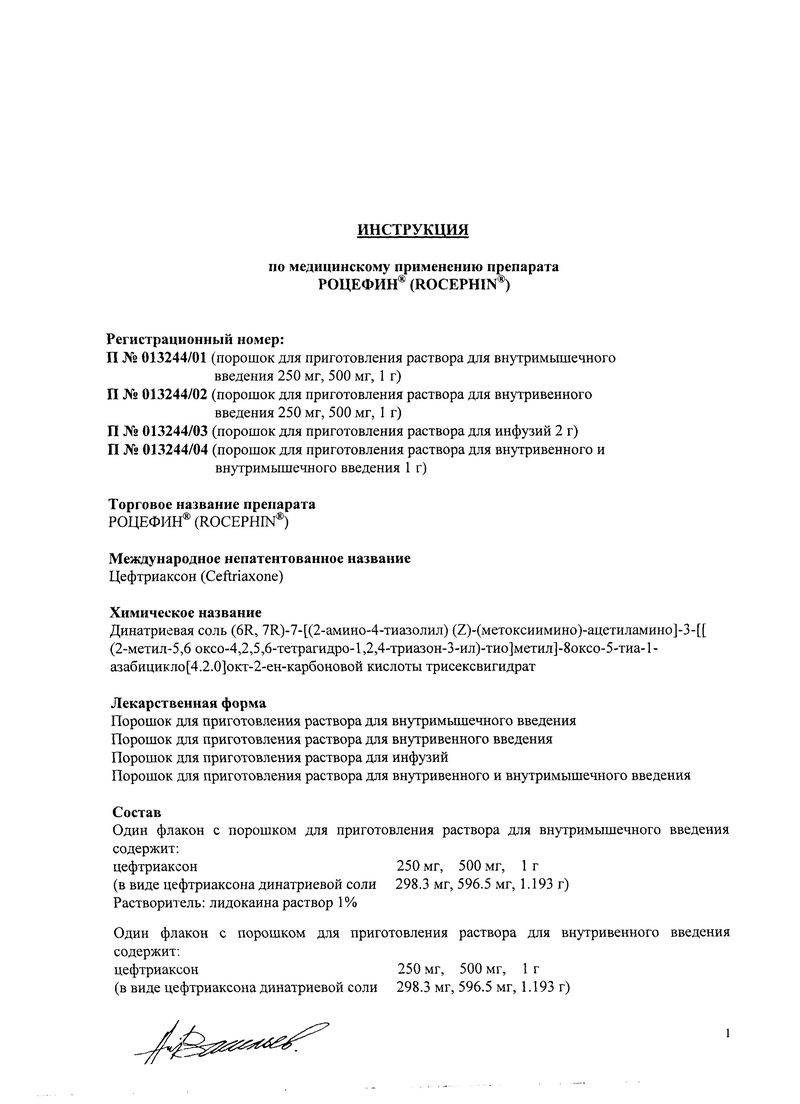 Описание лекарственного средства Роцефин® не предназначено для назначения лечения без участия врача.