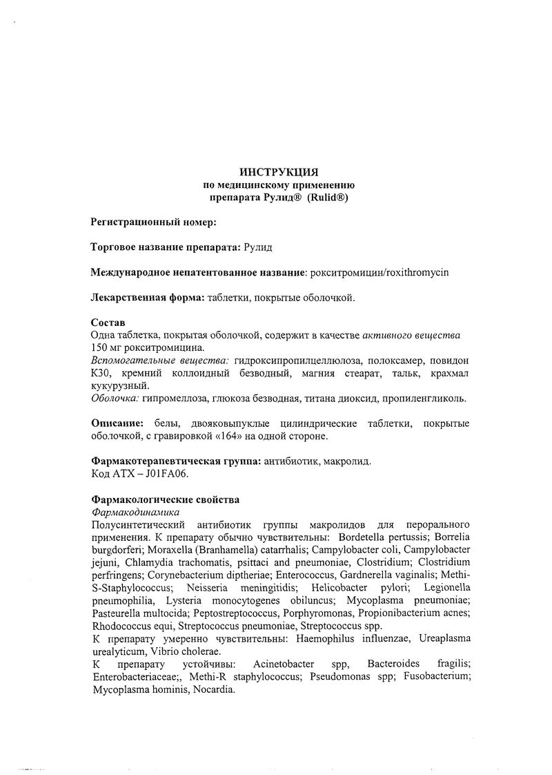 Рулид® (Rulid®), описание лекарства, фармакологические действия, действующие вещества и формы выпуска