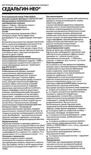 Седальгин Нео, описание лекарства, фармакологические действия, действующие вещества и формы выпуска