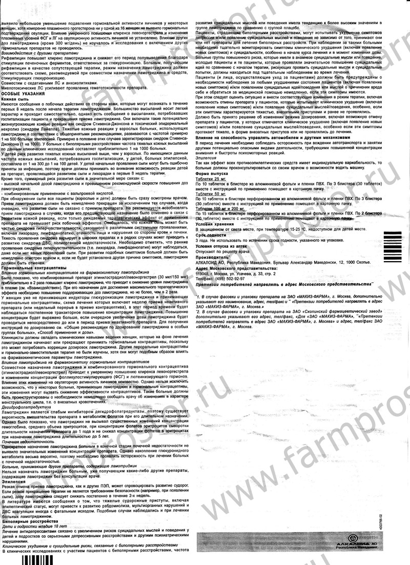 - Действующее вещество: Ламотриджин