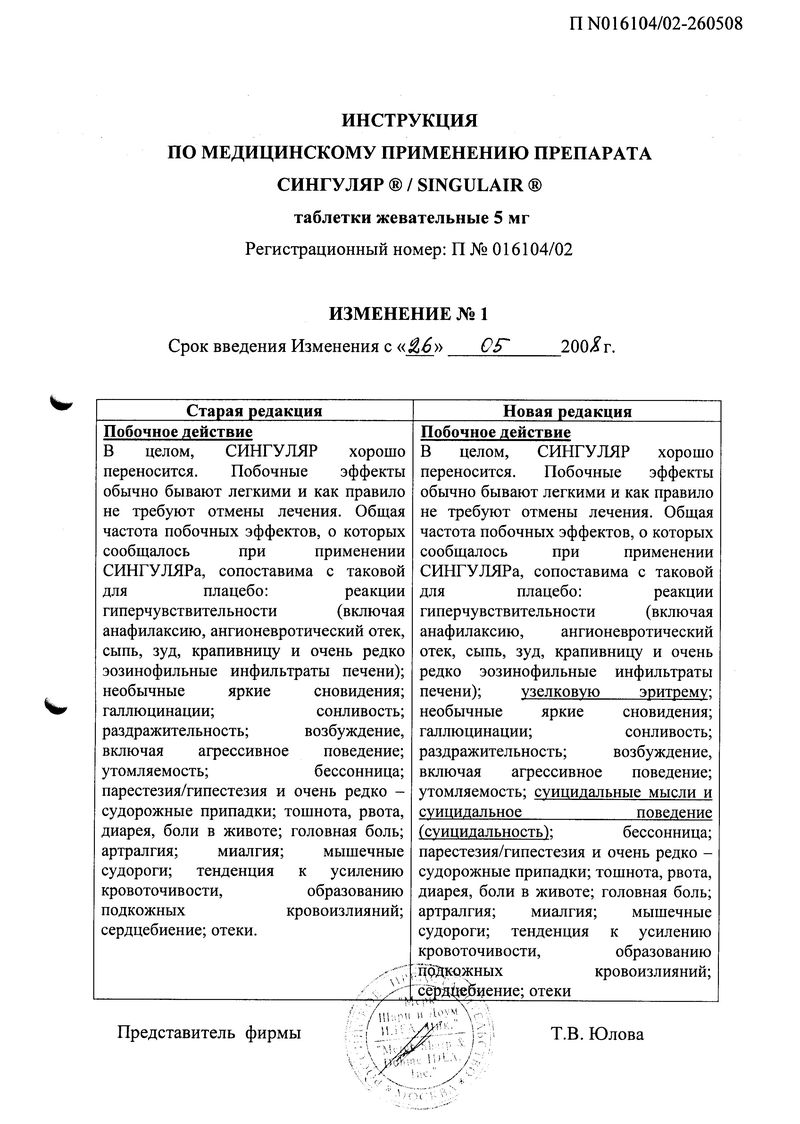 Описание лекарственного средства Сингуляр не предназначено для назначения лечения без участия врача.