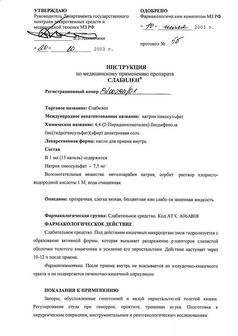 Описание лекарственного средства Слабилен не предназначено для назначения лечения без участия врача.