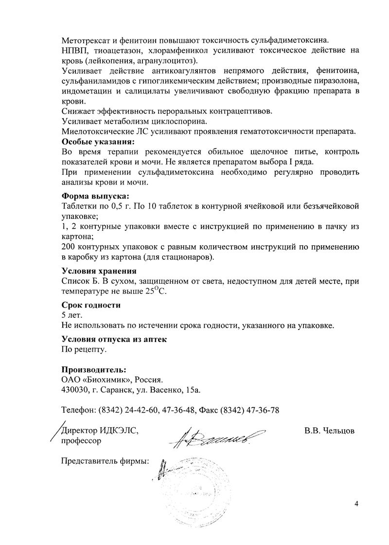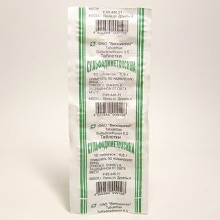 Описание лекарственного средства Сульфадиметоксин не предназначено для назначения лечения без участия врача.