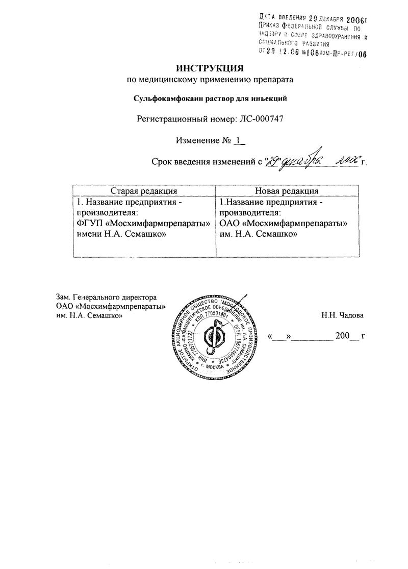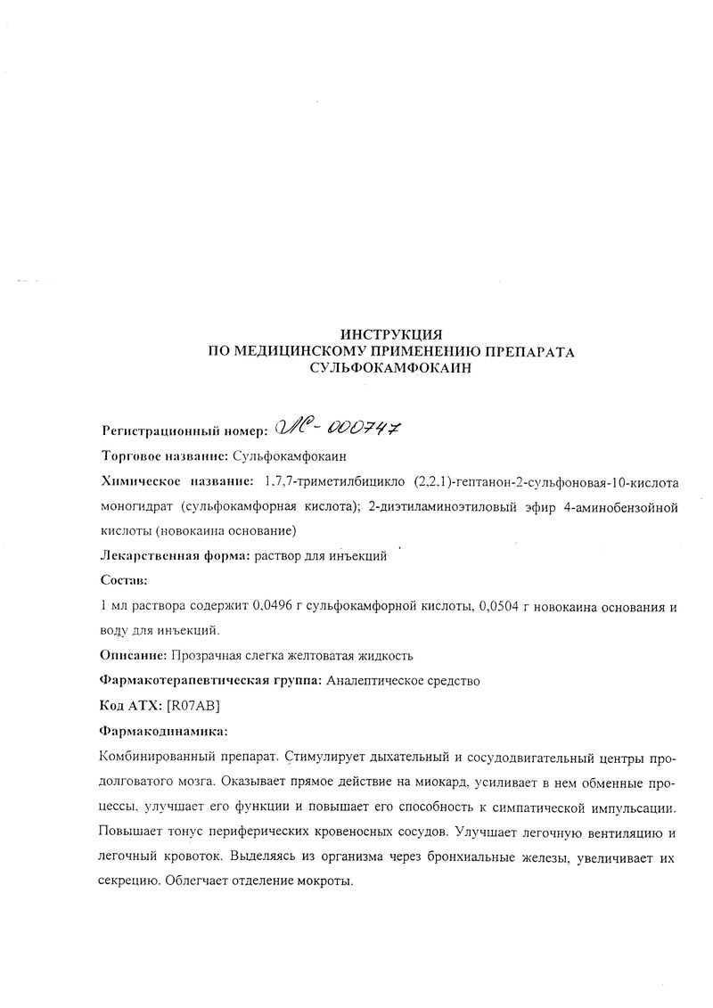 Дополнительные изображения лекарственного средства Сульфокамфокаин