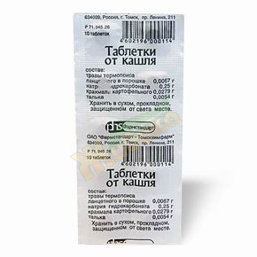 Описание лекарственного средства Таблетки от кашля не предназначено для назначения лечения без участия врача.