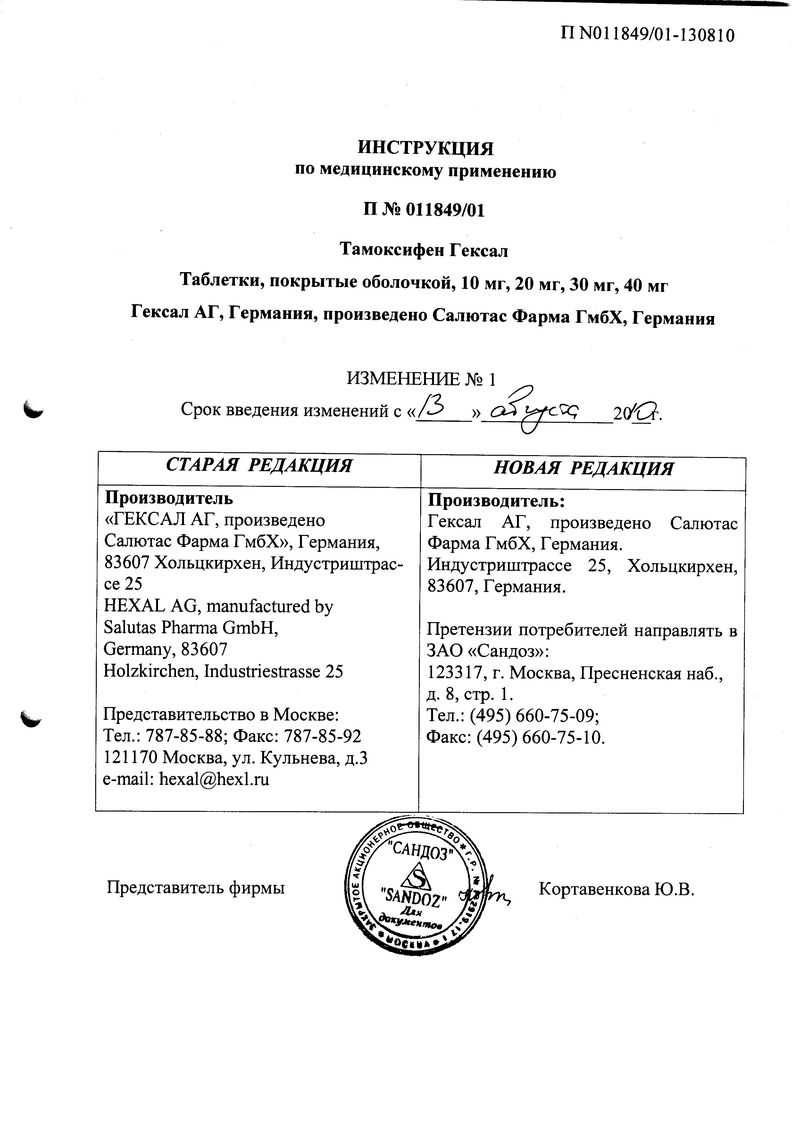 Дополнительные изображения лекарственного средства Тамоксифен ГЕКСАЛ
