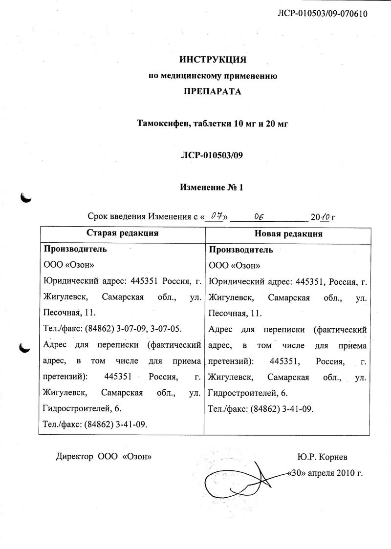 - Действующее вещество: Тамоксифен