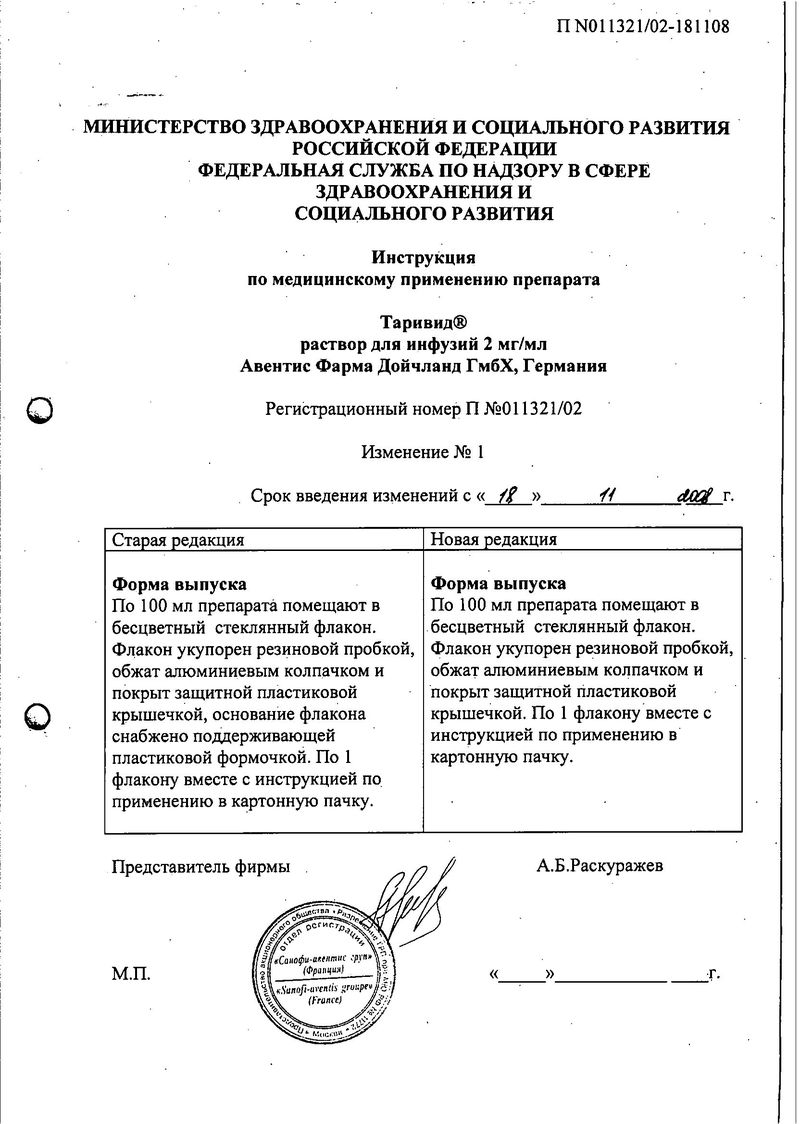 Описание лекарственного средства Таривид® не предназначено для назначения лечения без участия врача.