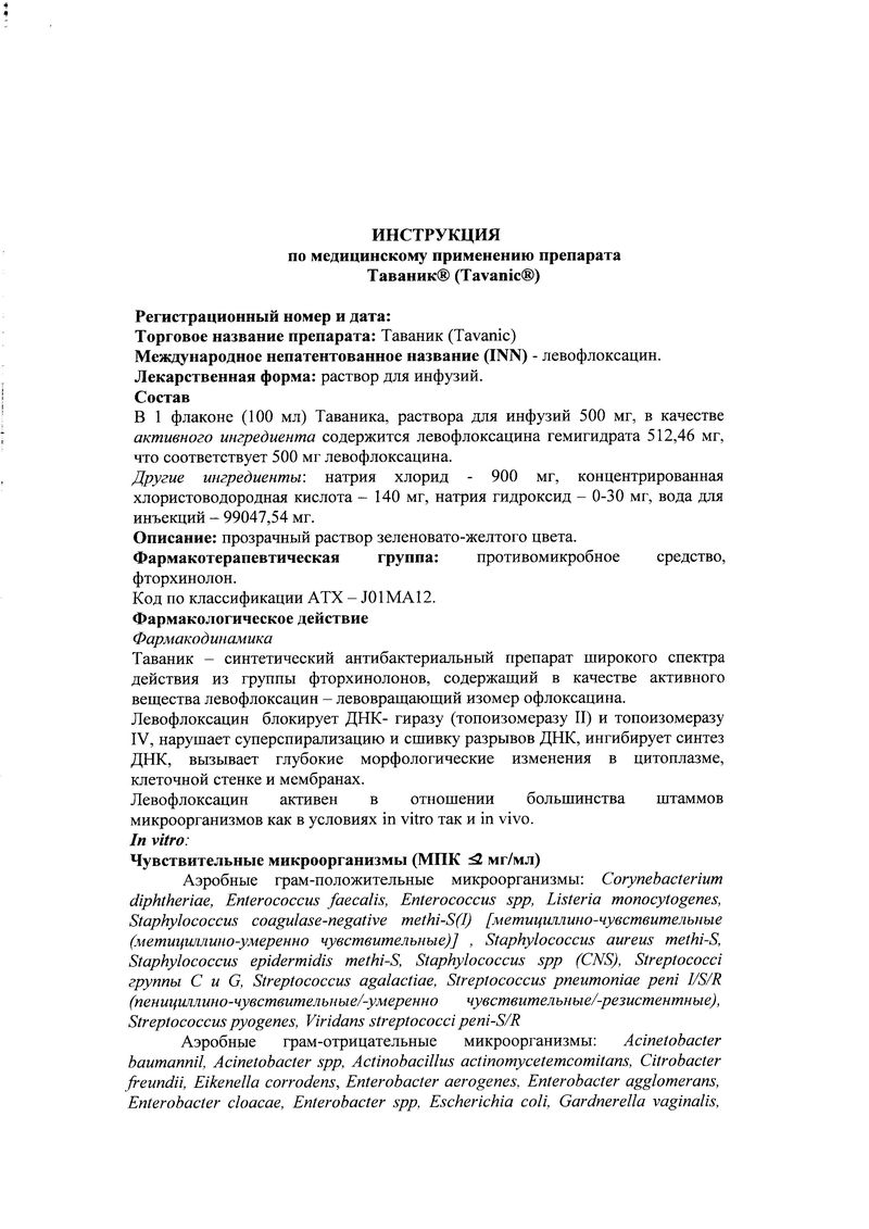 Таваник® (Tavanic®), описание лекарства, фармакологические действия, действующие вещества и формы выпуска