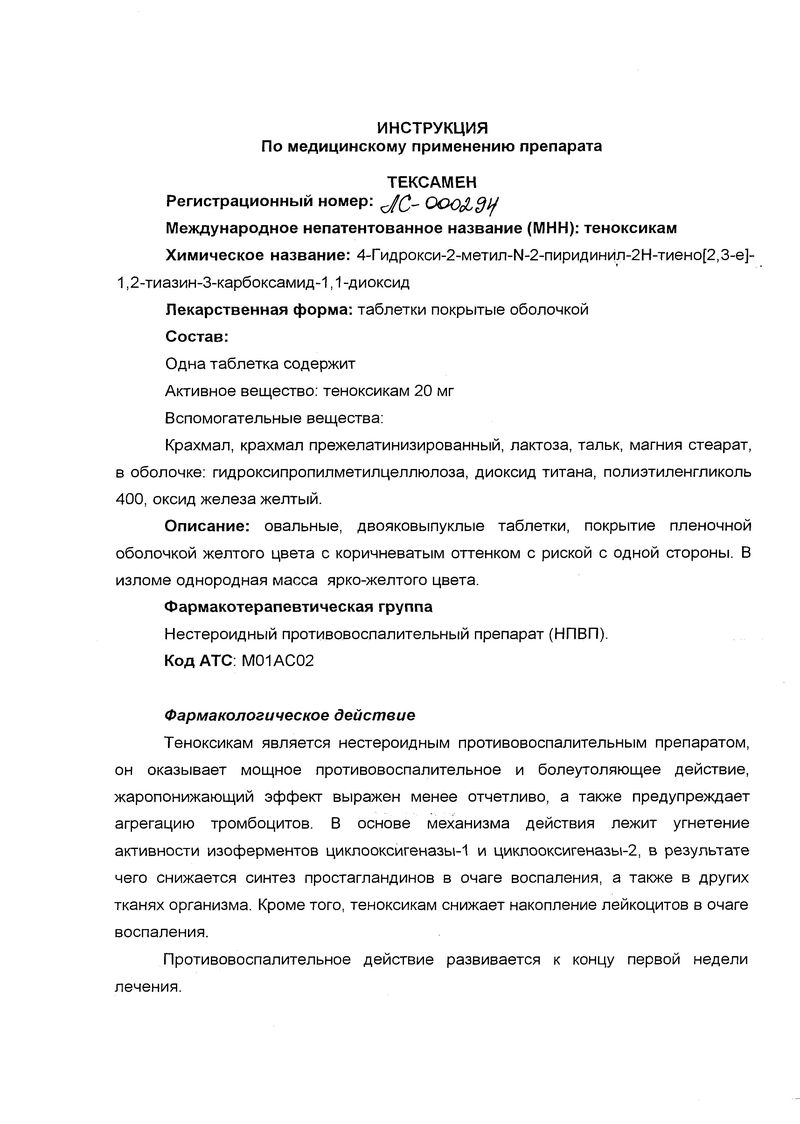 Тексамен (Texamen), описание лекарства, фармакологические действия, действующие вещества и формы выпуска