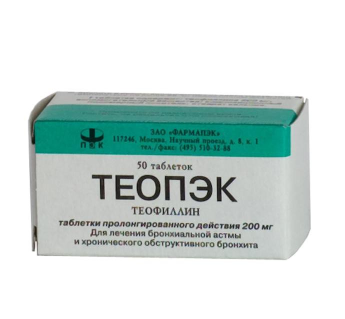 Теопэк (Theopec), описание лекарства, фармакологические действия, действующие вещества и формы выпуска