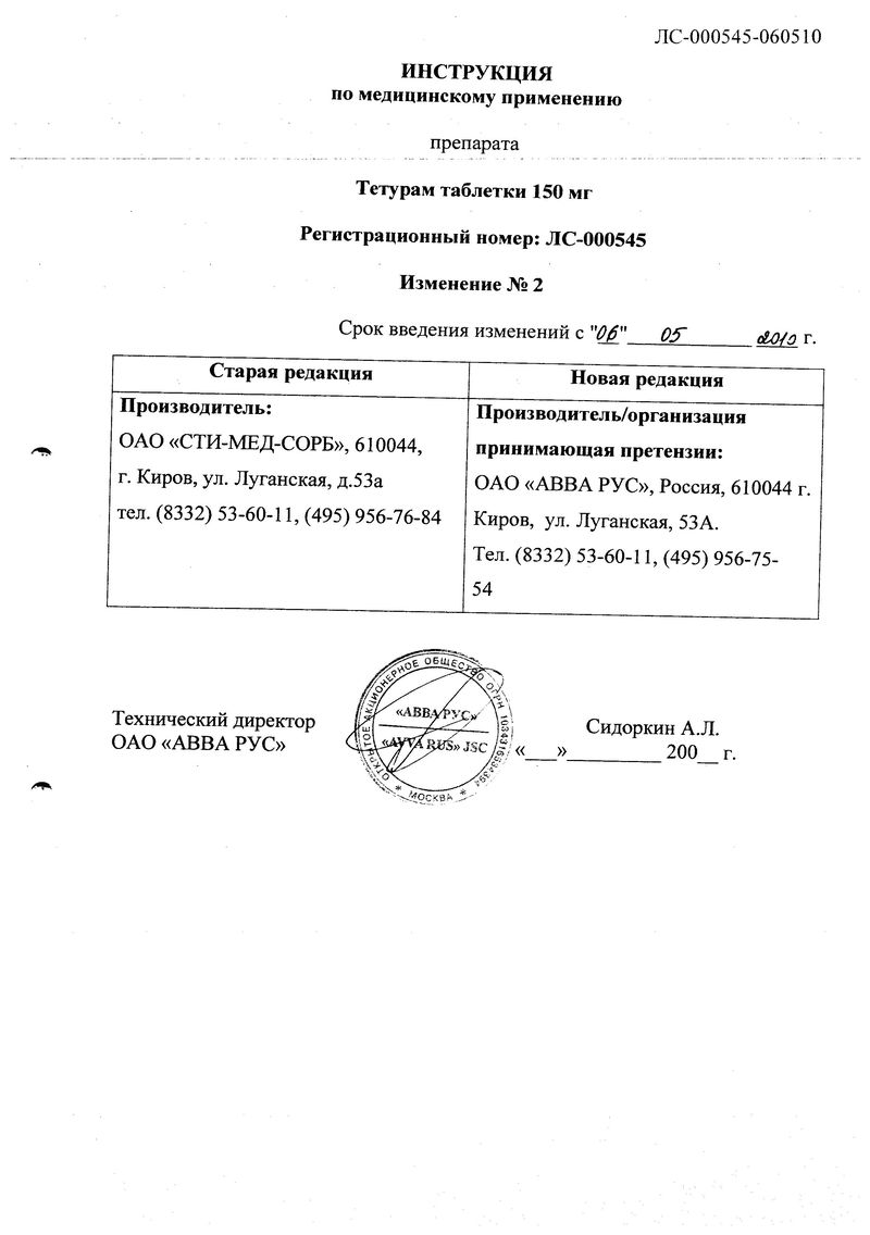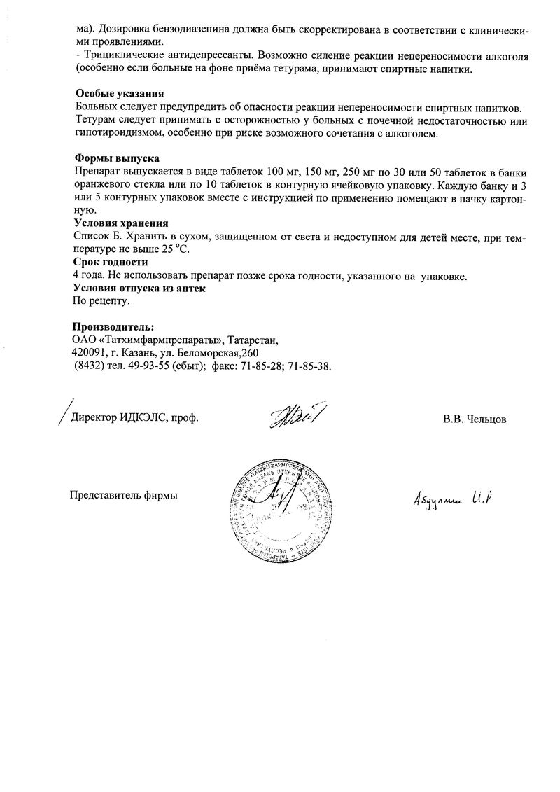 Описание лекарственного средства Тетурам не предназначено для назначения лечения без участия врача.