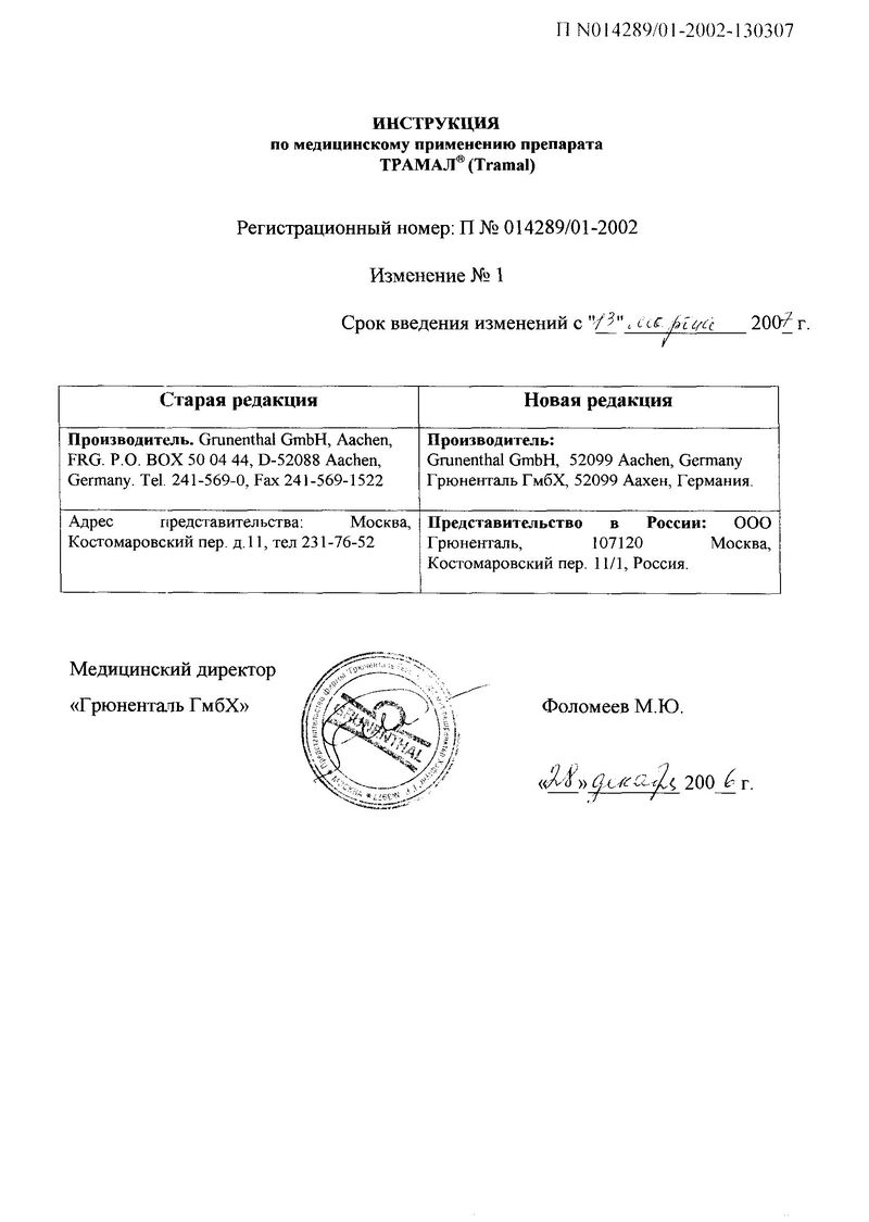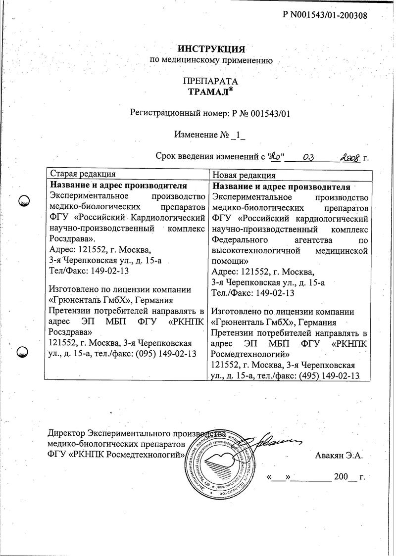 Описание лекарственного средства Трамал® не предназначено для назначения лечения без участия врача.