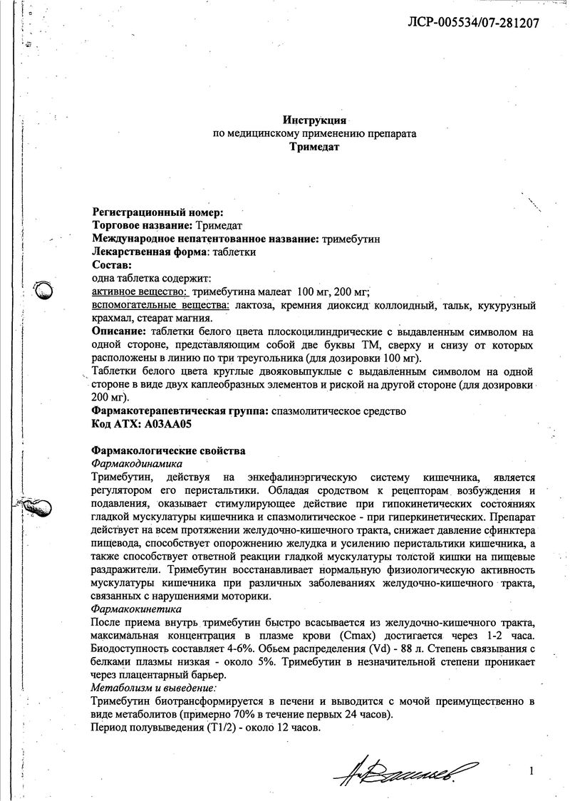 Тримедат® (Trimedat), описание лекарства, фармакологические действия, действующие вещества и формы выпуска