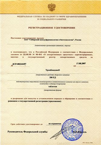 Описание лекарственного средства Тромбовазим® не предназначено для назначения лечения без участия врача.