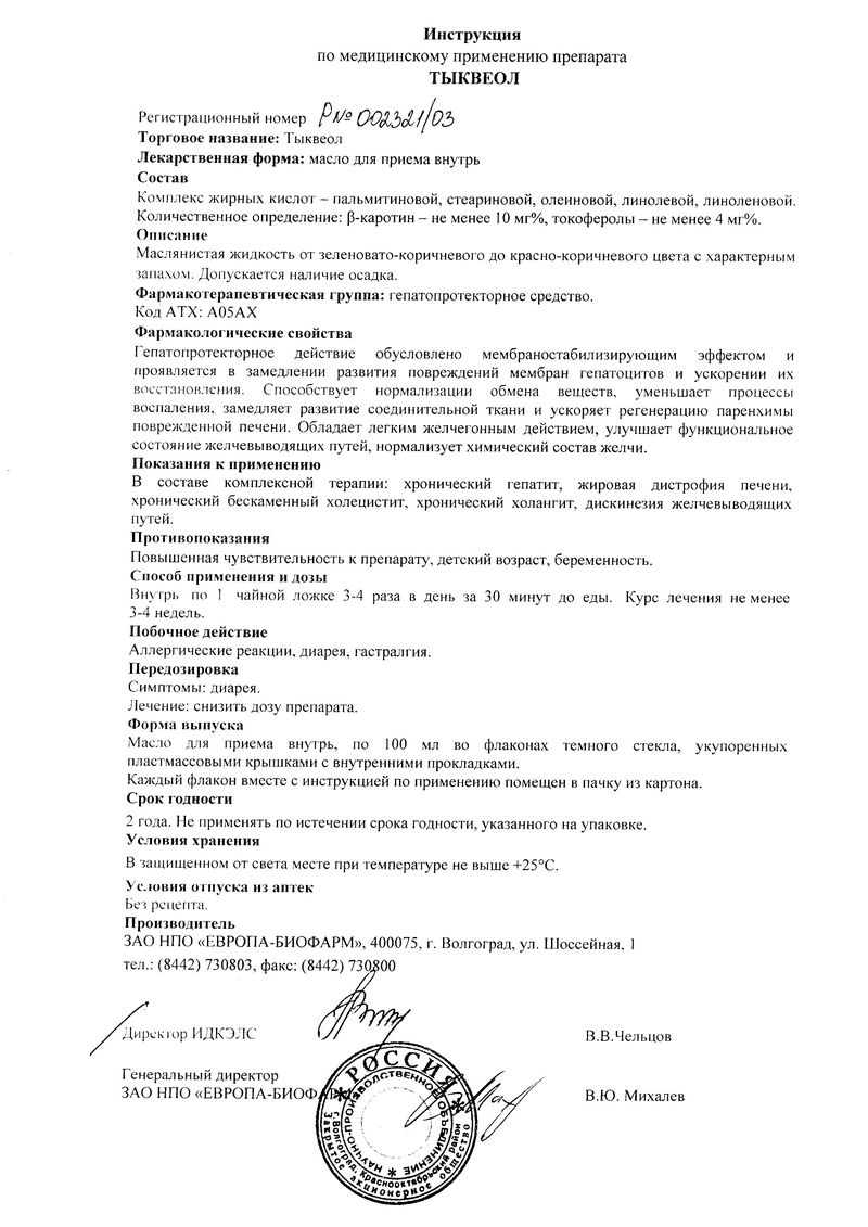 Описание лекарственного средства Тыквеол не предназначено для назначения лечения без участия врача.