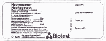 Неогепатект является препаратом иммуноглобулина, который изготовлен из плазмы доноров с высоким титром антител против гепатита В.