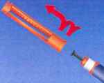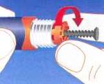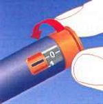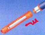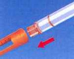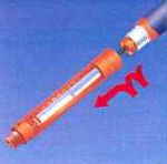 Вставьте картридж Пенфилл® в держатель картриджа колпачком цветовым кодом вперед. ![]() 6. Плотно привинтите друг к другу механическую часть инъектора и держатель картриджа Пенфилл®.