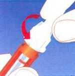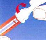 ![]() 7. Снимите с иглы НовоФаин® защитную наклейку и плотно привинтите иглу к колпачку картриджа с цветовым кодом. |