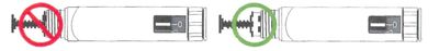 Возможно, заблокирован возвратный механизм. Осторожно покрутите возвратный механизм из стороны в сторону до тех пор, пока он не освободится. Поверните возвратный механизм по часовой стрелке так, чтобы шток поршня полностью вошел внутрь. См. иллюстрацию вверху. В заключение проверьте исправность инъектора в соответствии с пунктом 16.