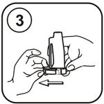 Для того, чтобы отмерить одну дозу препарата, выдвиньте дозатор из корпуса ингалятора до упора. |