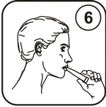 Сделайте спокойный и полный выдох, плотно обхватите мундштук ингалятора губами, форсированно и глубоко вдохните препарат и задержите дыхание на полном вдохе на 10 секунд для того, чтобы позволить частицам препарата осесть на слизистой оболочке бронхов. Выньте мундштук изо рта и сделайте медленный выдох так, чтобы выдыхаемый воздух не попал в ингалятор. Если вы не уверены, что вдохнули всю дозу, то сделайте контрольный вдох препарата. |
