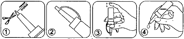 Снимите колпачок и легким надавливанием на широкую часть пипетки, выдавите необходимое количество капель препарата в носовой ход (на слизистую оболочку) - рис. 4.