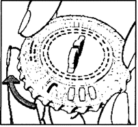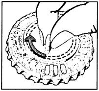 Прозрачный диск можно повернуть только после того, как будет извлечена таблетка, находящаяся напротив отверстия.