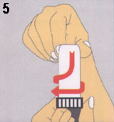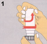 Держите Турбухалер вертикально. Поверните вращающуюся часть в одном направлении, а затем в противоположном до щелчка |