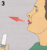 Выдохните в сторону. Не выдыхайте в мундштук |