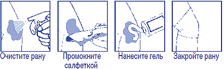 или бинта. Оставьте гель на обработанной поверхности, пока он