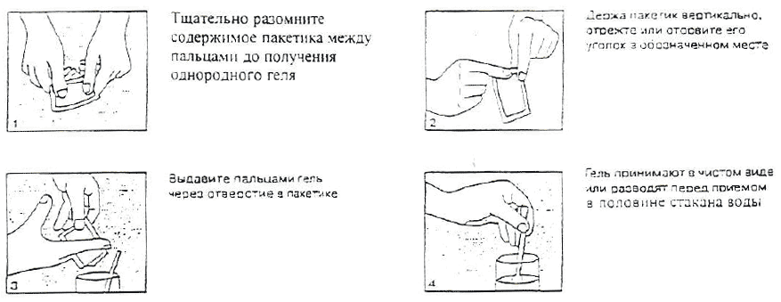 Гель для приема внутрь по 16 г по 20 г в пакетиках по 20 или 26 штук в картонной пачке с инструкцией по применению.