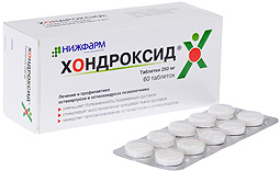 Хондроксид®, таблетки по 0,25 г. 10 таблеток в контурной ячейковой упаковке, 3, 5, 6, 9, 10 контурных ячейковых упаковок вместе с инструкцией по медицинскому применению препарата помещают в пачку картонную.