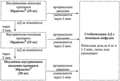 1) Внутривенно: 10-50 мг препарата Эбрантил