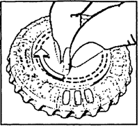 Отломить пластмассовый язычок и, наклонив коробочку, извлечь первую таблетку.