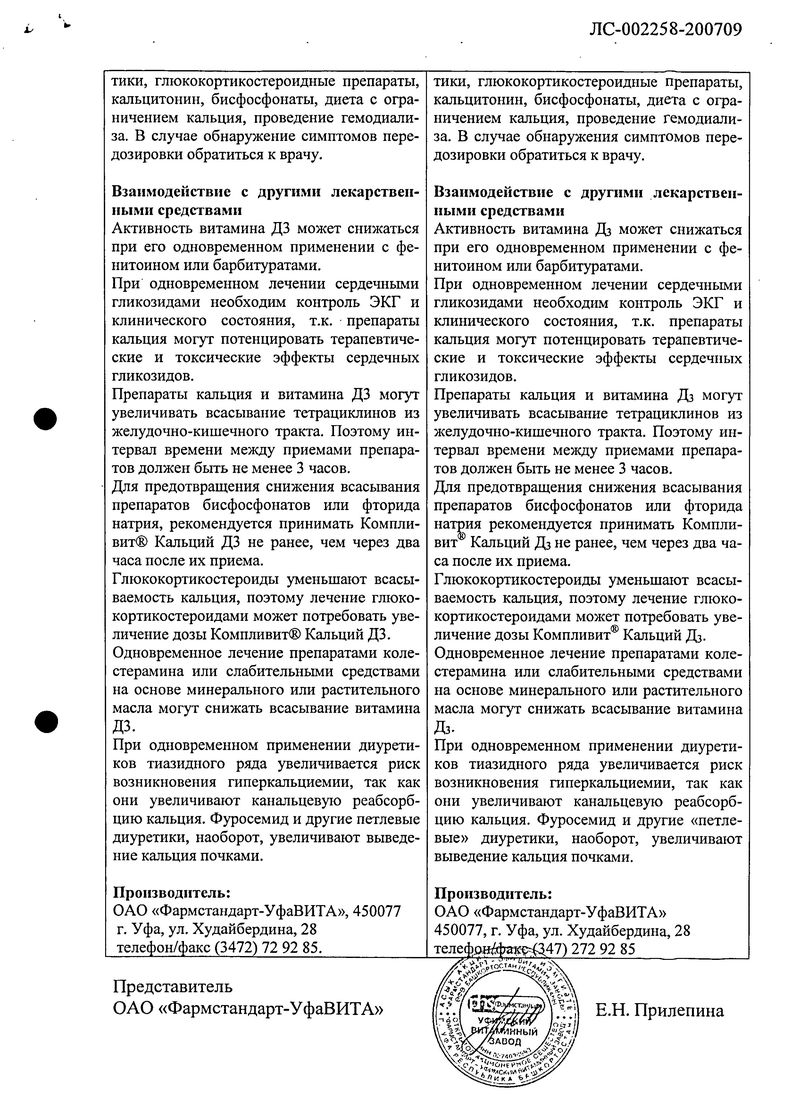 Глюкокортикостероиды уменьшают всасываемость кальция, поэтому лечение глюкокортикостероидами может потребовать увеличение дозы Компливит® Кальций Д3.