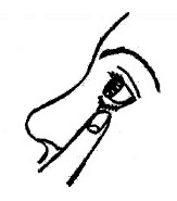 - Наклонить голову назад и слегка оттянуть нижнее веко вниз для появления пространства между веком и глазом.