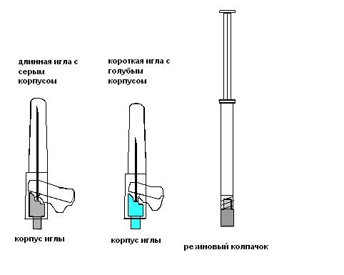 Для введения в ЯГОДИЧНУЮ мышцу используют длинную иглу (с серым корпусом).