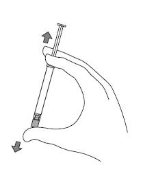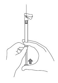 - Направьте шприц иглой вверх и выдавите из шприца воздух, слегка надавив на поршень.