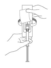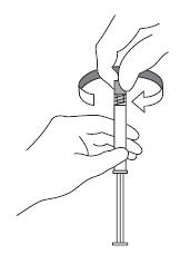 - Держа шприц вертикально, снимите с него резиновый колпачок путем аккуратного вращения по часовой стрелке.