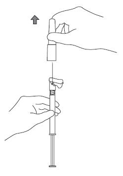 - Снимите с иглы колпачок, потянув его вдоль иглы. Не вращайте колпачок, так как это может ослабить соединение иглы со шприцем.