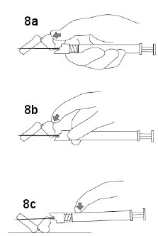 8а) или указательным (рис. 8b) пальцем или надавив шприцем о твердую поверхность (рис.