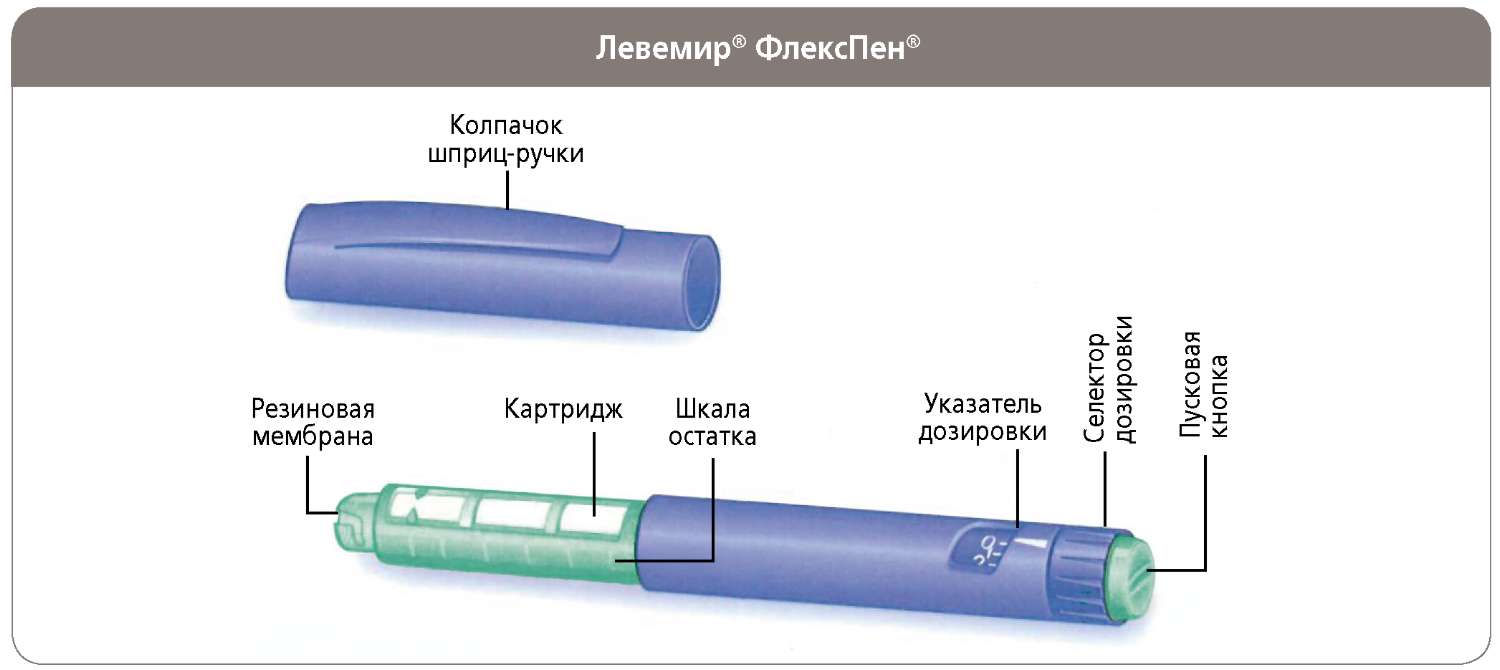 Левемир® ФлексПен® разработан для эффективного и безопасного применения и требует осторожного обращения. В случае падения или сильного механического воздействия, возможно повреждение шприц-ручки и вытекание инсулина.