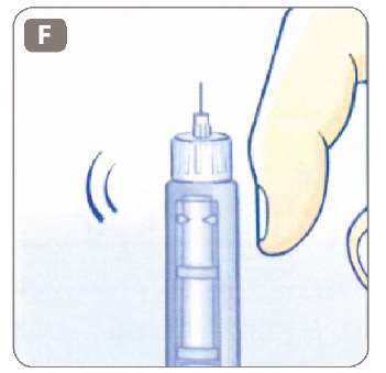 Держа Левемир® ФлексПен® иглой вверх, несколько раз слегка постучите по картриджу кончиком пальца, чтобы пузырьки воздуха переместились в верхнюю часть картриджа. |